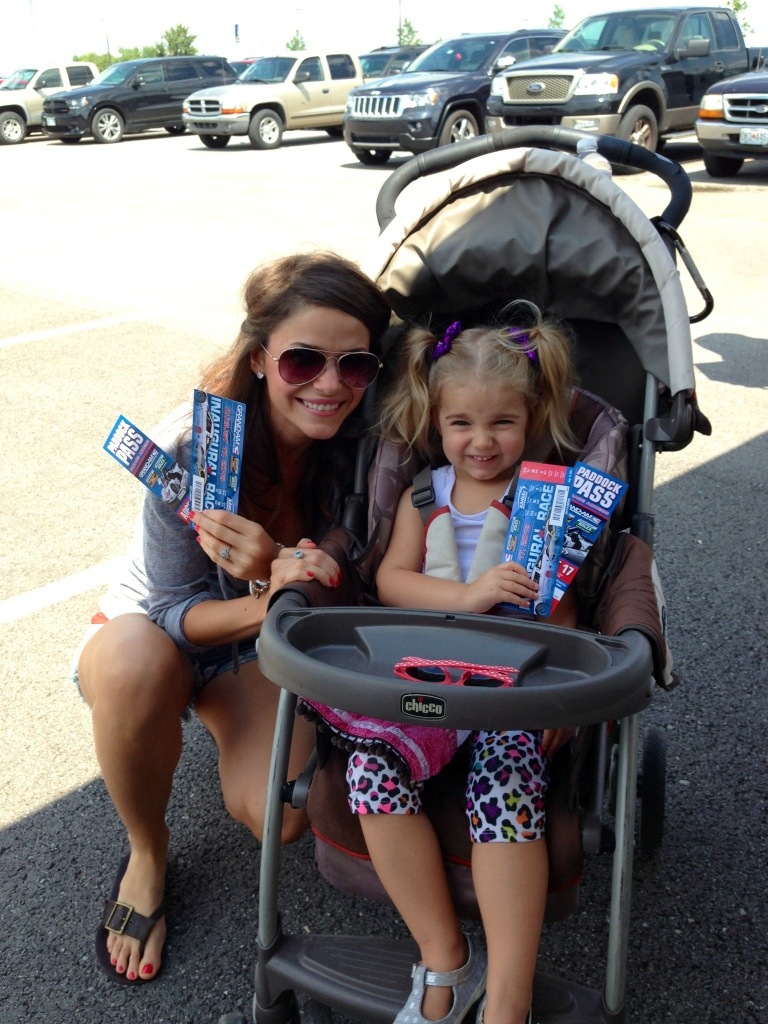 Tickets in hand, we hopped on a tram and were on our way into the speedway. As we entered the infield the Lamborghini race was getting ready to start. The cars fired up and were warming up around the track. They looked awesome going by, and sounded even better. We weren’t sure how Roz would handle the noise. She LOVED the loud race cars.