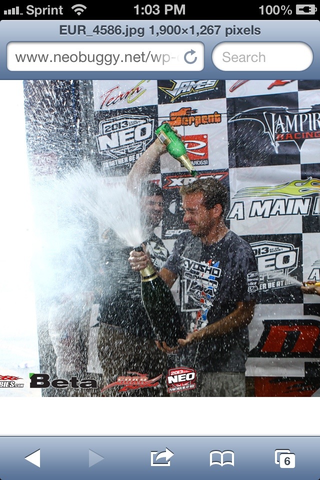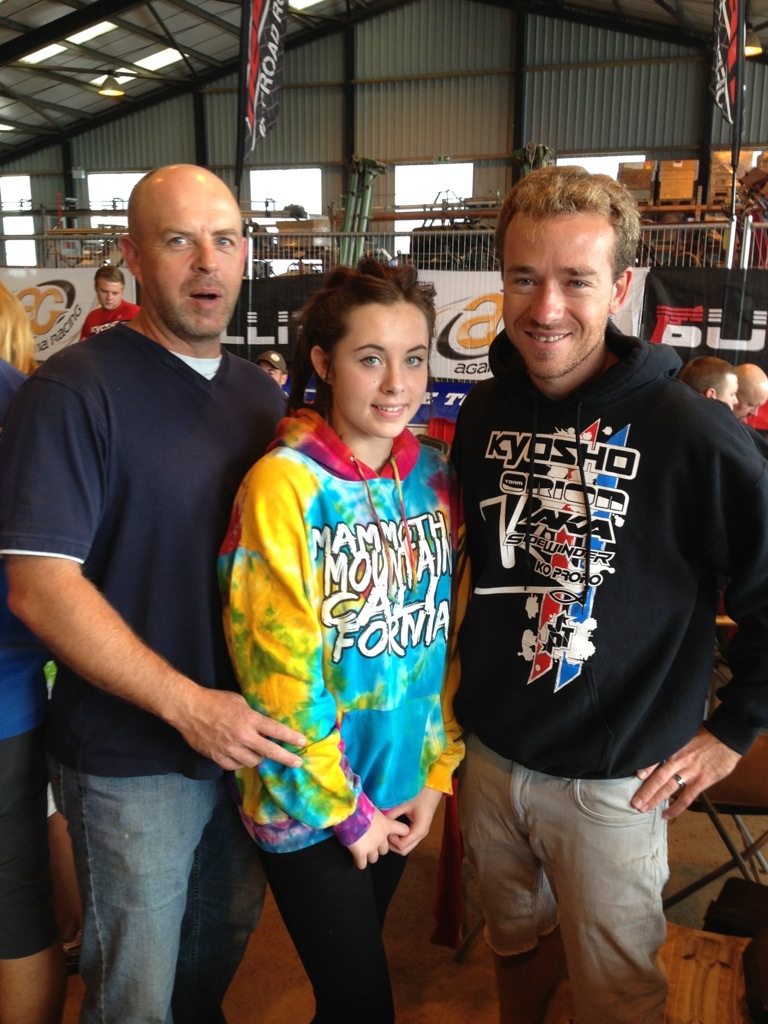 Neo13 is over. What a great day today!!!!! I got my 5th victory in nitro at a Neo race out of 5 appearances. I will start the day at the beginning. We had the final for electric. After yesterday’s switch issue in the semi, I was 15th on the grid. I did not get a good start as someone decided to roll the first double in front of me and I was planning on jumping it. I made my way up into 5th or 6th about halfway through, then a marshal jumped out to get some crashed cars on the launch thing after the huge double. I landed right on the marshals head. Thankfully he was fine. He was also my mechanics daughters boyfriend. Crazy!!!!! I ended up 4th, not at all what I wanted, but that is racing. After that race I was surprised by two faces at my pit. At first I did not realize who they were. This year the HotRod Shootout, I met a nice English family at the pool. We chatted a few nights and talked life. I told them about this race and where it was. They freaking showed up at the track today. How RAD is that!!!!!! True fans 🙂 cheers mates!!!!