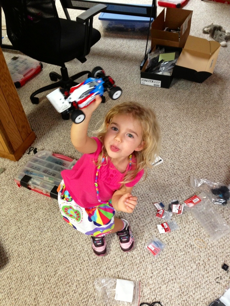 Kyosho makes a mini z replica of my 4wd. I haven’t ordered one, so I went ahead and ordered up one for Roz. She loves my race cars, and always wants her own. She was excited to say the least.