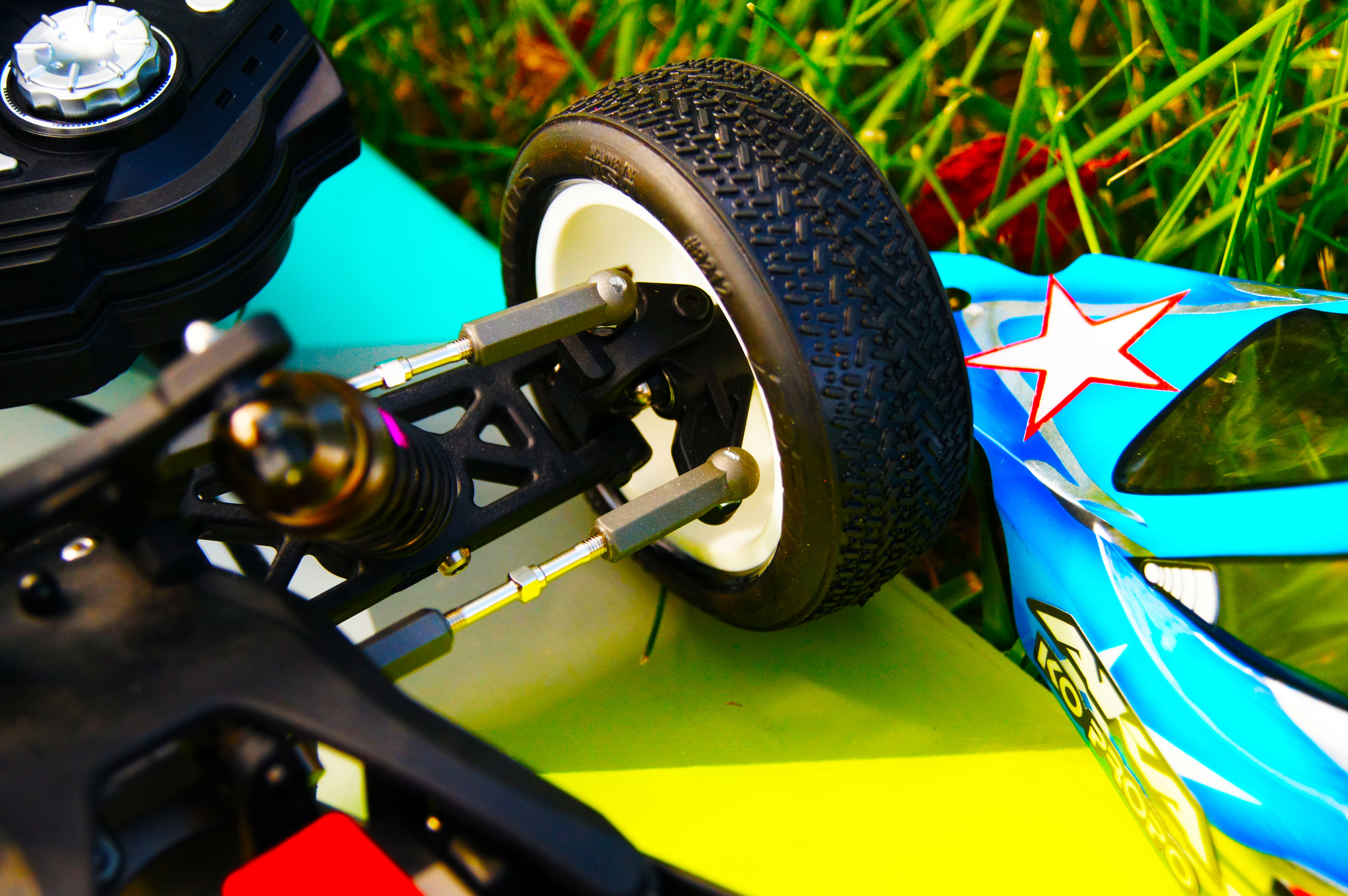 Hop Up Parts: Kyosho aluminum steering plate UMW701, Kyosho Aluminum Steering Crank Arms UMW702, Kyosho Aluminum Suspension Mounts UMW705 , UMW707, Kyosho SP Motor Plate UMW509GM, Kyosho V2 Aluminum Rear Hub UMW704-0
