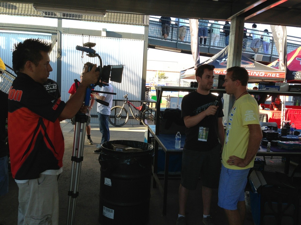 After that is was business time. First practice actually felt pretty good, the track is super fun. I changed a few things in a couple of the rounds, and for P6 I had my car feeling really good. P7 was the seeding round. My car felt amazing, but I was on brand new tires front and rear, so it’s a little crazy for the first few laps. I only did 4 laps, then I hit a new pipe they added near the timing loop and broke the rear arm off my car. Luckily my car felt so good that I managed to get 2 good consecutive laps in a row in the 4 laps I did. I ended up 4th overall in the seeding. After that there was an optional P8. I wanted to stay and get more track time, but I got in the dust on the first lap and broke another rear arm. All in all a very good day, but a little rough at the end. I feel great with my car, and hopefully we won’t have to drive at night anymore this week. Here is a pic doing and interview with RC Car Action, and a video of a few laps.