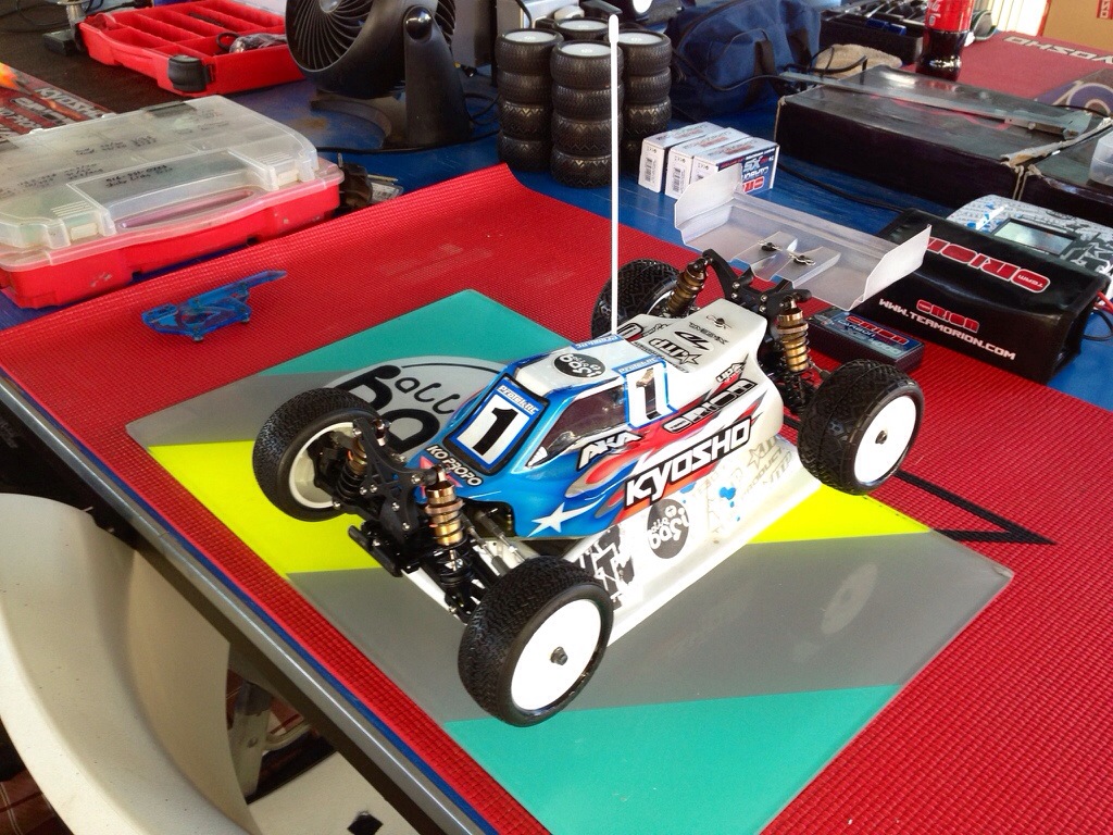 Finals day was weird. I wasn’t there with a chance to win. I started 8th in the E-main. Morning practice my car was ok, but I made some changes for the final. My car in the final felt really good in the turns, but landing was a different story. I guess what I changed really effected the landing. I could not land the triple after the straight, I would roll over every lap almost. I tried my best, but I finished 4th. 4wd was finally over. Chikuba, Kyosho designer, felt terrible. We win as a team, we lose as a team. We didn’t have a car that we thought we could win with, so we came with a prototype car hoping it would help our chances. We learned a lot, tried keeping our heads up, and we took the loss for what it is. We will be back in 2 years for 4wd revenge!!!!! Thanks KYOSHO and Chikuba-San for all the hard work and the great support!!!!! Sorry for the lack of updates, thanks for checking back in, and God Bless.
