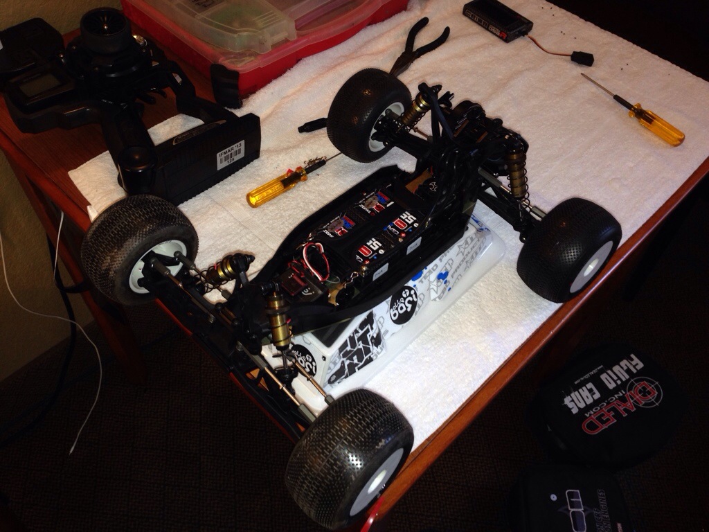 Once we got to the hotel, we set up pit in the room and it was wrench time. After the worlds, I was so busy moving , I didn’t have time to build my new RT6 (actual production) It was all in a bag. We worked on it from 9pm to about 11:30pm, then started back at 7:30am to 9:30am, and she’s done.