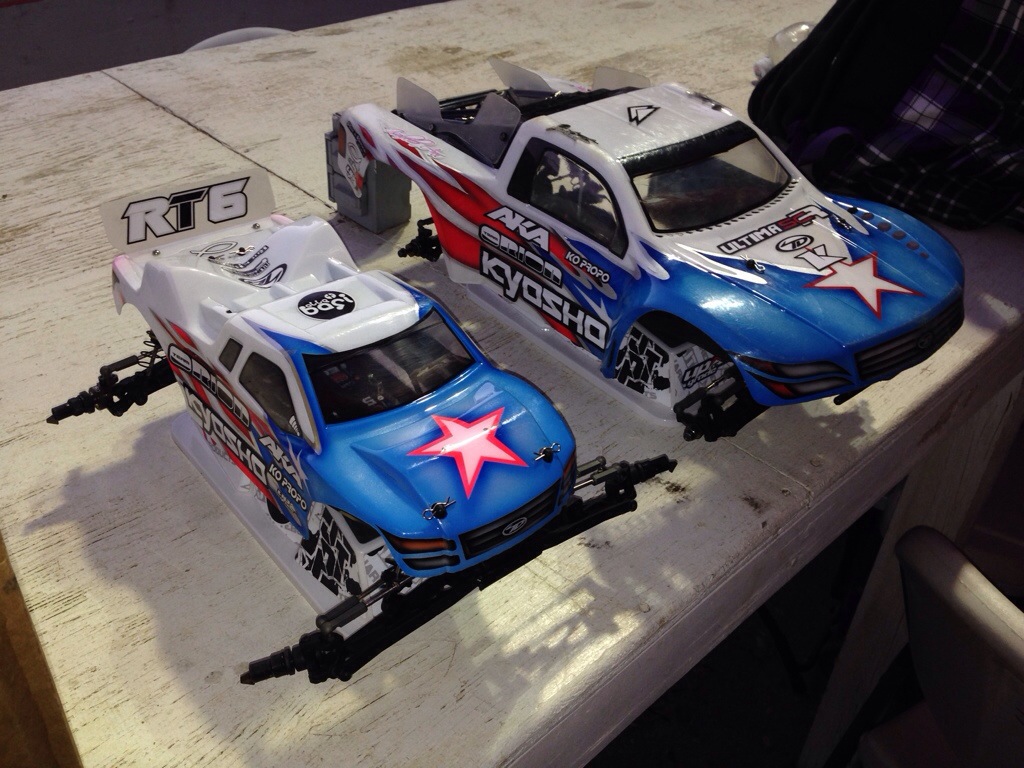 Today we actually got to hit the track. They delayed the start time till noon, and they had practice from 7am to 11:15am. The wind was still blowing, but it was way calmer than yesterday. I ran both trucks a few times and was ready to rock. As noon got closer, the wind got stronger. First race was SC, and the wind was a blowing. I had a decently clean run for the wind, I did get blown off the track and into a bush off the triple. I got a second for Q1. In truck I had a clean run and took the Q1 TQ. The next few runs went ok, but I didn’t really get the clean runs I was trying to get. In Q3 the overall TQ was up to me or Cody Turner, and we were both flying and fighting it out. We had a 5 second lead over Cav and we were pushing hard. I ended up having a crash and blew my shot. I will start 2nd in truck and 4th in SC. My cars feel really good, and the wind is supposed to be not blowing tomorrow. It should be a pretty fun finals day. Racing will be crazy on the track. It’s got pretty big jumps and you are kinda out of control going around. Here are my rides all ready for tomorrow.