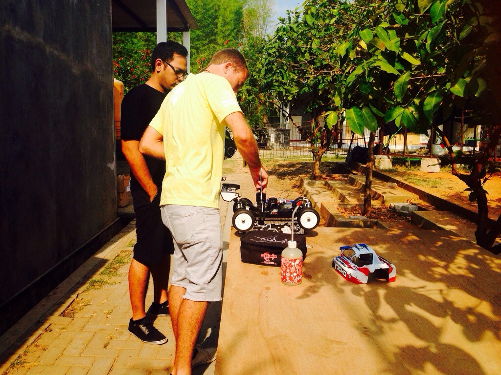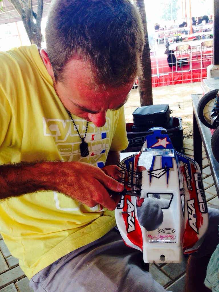 After I ran a couple times I started to work on the car a little. My car was too soft. I went to 10k/10k/5k diff oil and 50/35 shock oil and then I was feeling better out there. My car felt good, but I will make a few changes to the car for tomorrow’s practice. It’s pretty awesome, I got Megan down in pit lane. She’s doing an amazing job pitting, she doesn’t really pit for me very often. I really want her to pit for me in the race, but she’s pretty nervous about it. She will do great though is she decides to go for it. We had some awesome track food.