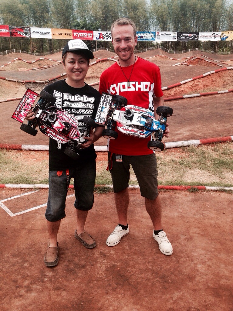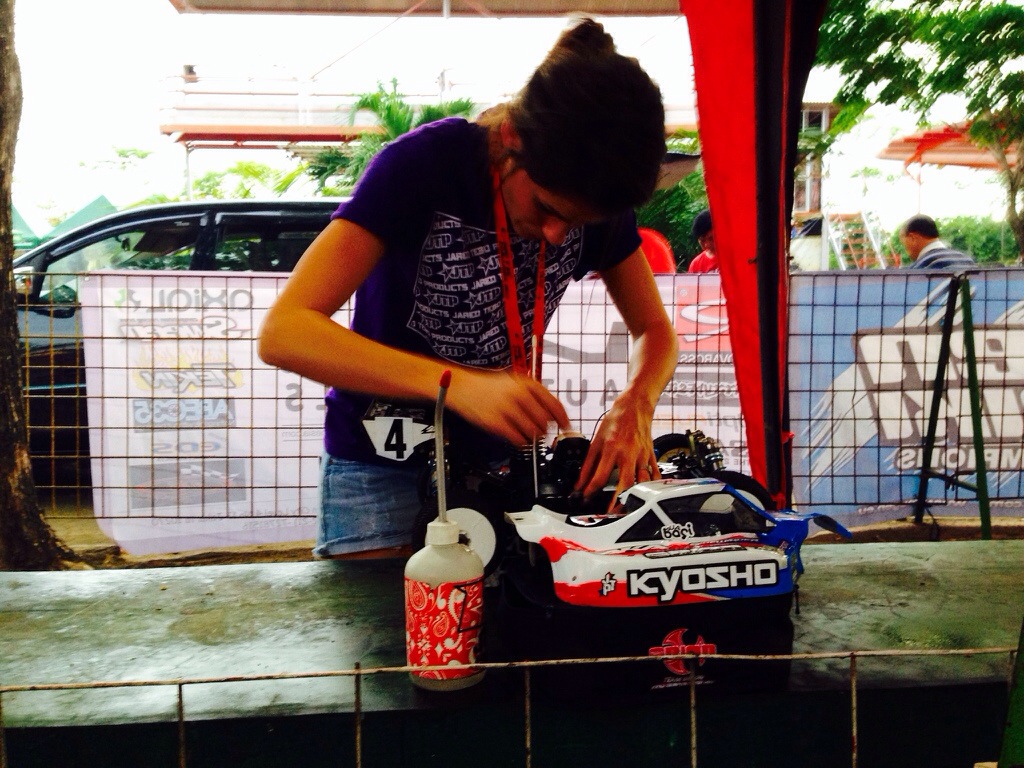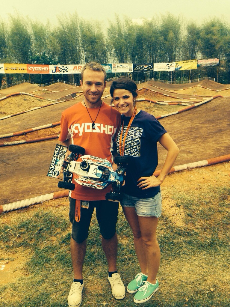 After all the media fun was over, it was time to get ready for the official practice that would seed for qualifying. The seed would be the entire 5 minute time. I worked on my car a little, new air filter, new clutch and she was ready. I ran medium Impact in the first run and they felt really good. I had 1 really long crash, but all my other laps were really smooth and much faster than I’ve gone so far this weekend. I finished 2nd to Kyle McBride. For the second practice I made some changes to the front end and ran medium Enduro. My feeling was not good. I lost all my steering. I don’t think it was the tires, as I liked medium Enduro in controlled practice. For qualifying I will change my car back and it should be good to go.