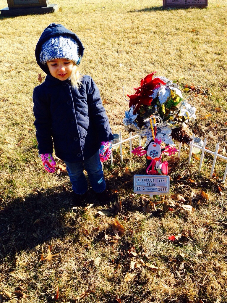 I am missing you sooooooooo much. I know you are ok and you are looking down on me. I haven’t cried much in a while when I think about you, sometimes I feel that that means I don’t miss you. I know that is the world wanting me to feel guilt. I miss and love you more than words can explain. It’s almost your birthday, and I can’t stop thinking about how we should be preparing for our child’s first birthday. Yesterday we went to a little boys first birthday and I was jealous of the parents. They were so happy, and enjoying how he is growing. All the family was there with gifts, and to celebrate. I know you are up in heaven, but it just doesn’t feel the same. We went to you grave the other day and put some new Christmas flowers there. Roz picked out an ornament to hang on the flowers too. She loves Penguins, and so do I, so it’s a Penguin. She also wanted to give you a Candy Cane. Roz loves them, and she thought you would like it too. Haha. Roz really loves you too Bella. She always talks to you when we go visit your grave. This time she wanted to sing you a song. She sang you Mary had a Little Lamb. It sounded pretty good and I’m sure you could hear it. We have plans to celebrate you next weekend, but I’m not sure what we are doing. I know God gave you to us for a reason, but it is very hard to see the positive side all the time. I hope God took all your pain away while you were in Mommy’s belly. I can still see you very vividly in my memories. To me, you looked beautiful and perfect. I have nothing but great memories of our time together, it was very special for me. Mommy got to carry you and feel your beating heart, but I didn’t have that close side with you. I wish I read more to you, I wish I talked to you more, I wish I sang to you more. If I could do it again, I would cherish every second I had while you were with us. I want to read my poem to you again.