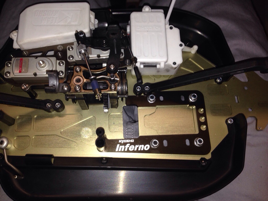 Put on the new Kyosho MP9 engine mount plate. It’s pretty awesome when you can work with a company that actually views your thoughts and opinions as important. Kanai and I have a pretty good relationship and an understanding of each other. We don’t need to talk all the time, he does his thing, he lets me do my thing, but if I have a suggestion, or he has a suggestion, we can talk about it.