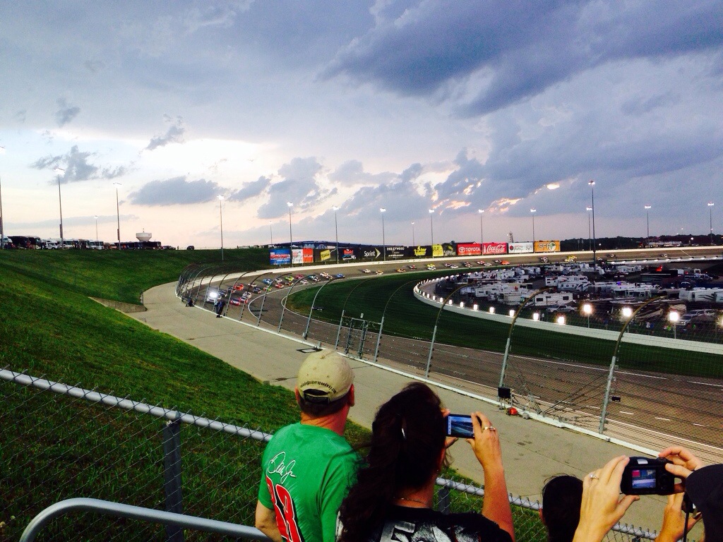 After the long walk to the speedway, we made our way in to get a view of the track. There was a concert going on and teams were bringing out the cars. We walked around and found our seats. We were right in turn 4 and only 18 rows from the bottom. I kinda thought our seats were gonna be not too good, but they actually were awesome.