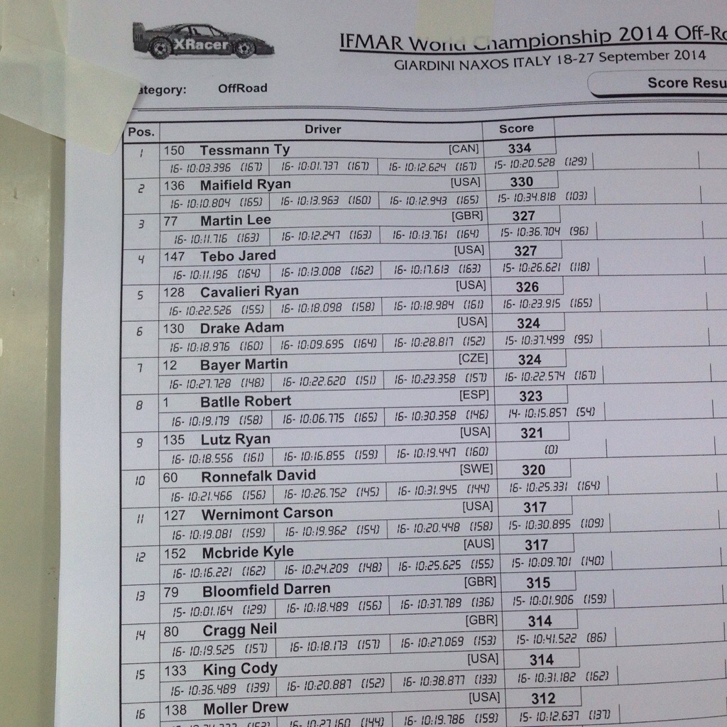 Now the WC is over and it’s 2 more years that I have to prepare to get my ultimate goal in RC. Thanks to all my sponsors for their support, all my fans, and my family. See you all at the next race. God Bless.