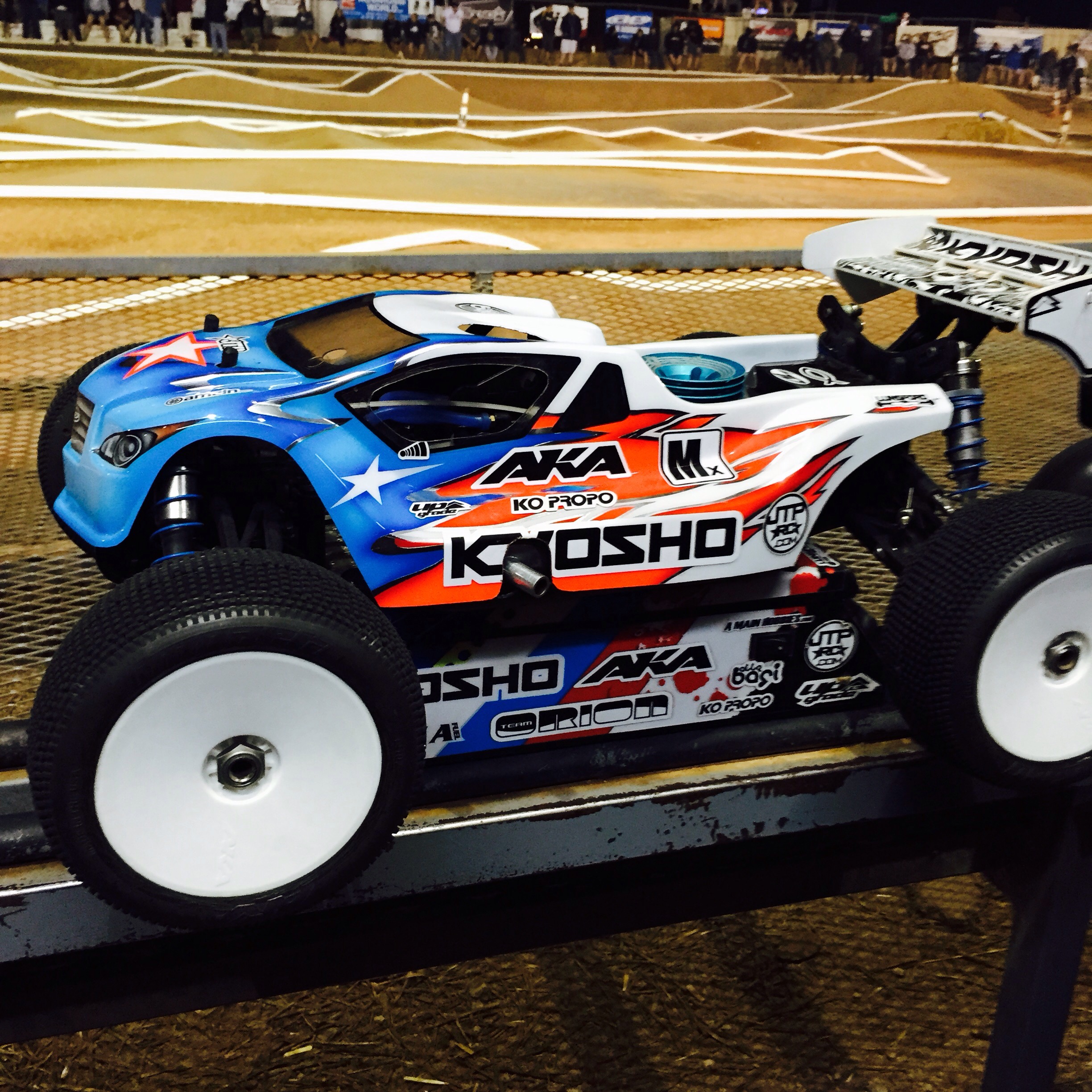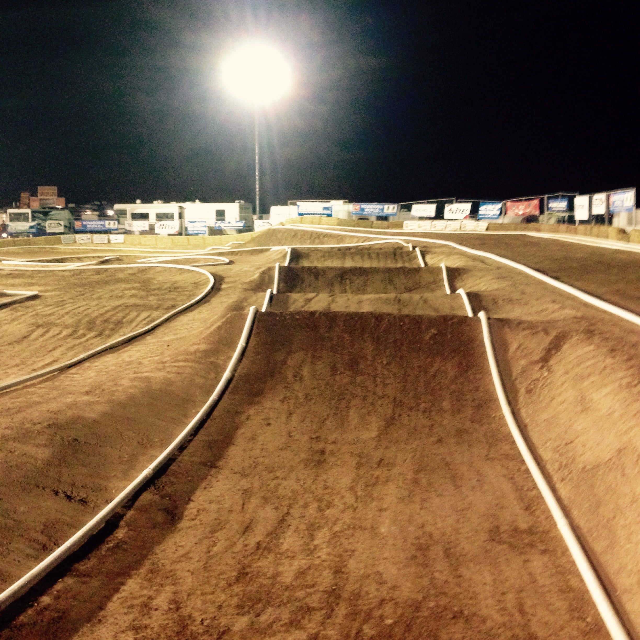 Saturday was here…..Race Day #1 at DNC 2015. We had a pretty long day of just sitting at the track waiting. Amain warm up for both Truggy and Electric Buggy would be around 3PM – 4PM, with both mains being later in the night, and under the lights. Amain warm up for Truggy felt awesome. My truck felt fast and my engine was running perfect….me and Ty paced around with each other for most of the 10 minute session. The warm up was in the heat of the day, but the race would be around 10PM, so I was unsure about tire choice. Electric Buggy was much of the same. My car felt great, and I was fast. I did use the 7 minutes to test two different sets of AKA tires, and I liked the ChainLinks the best. They added some water before our warm up in Electric Buggy….just another nod to a terribly organized race event….water was very inconsistent all week and you never knew what track you would get. Electric Buggy warm up during the daytime….with water…..Electric Buggy A-Main at night-time, with a totally dry track…..great job!
