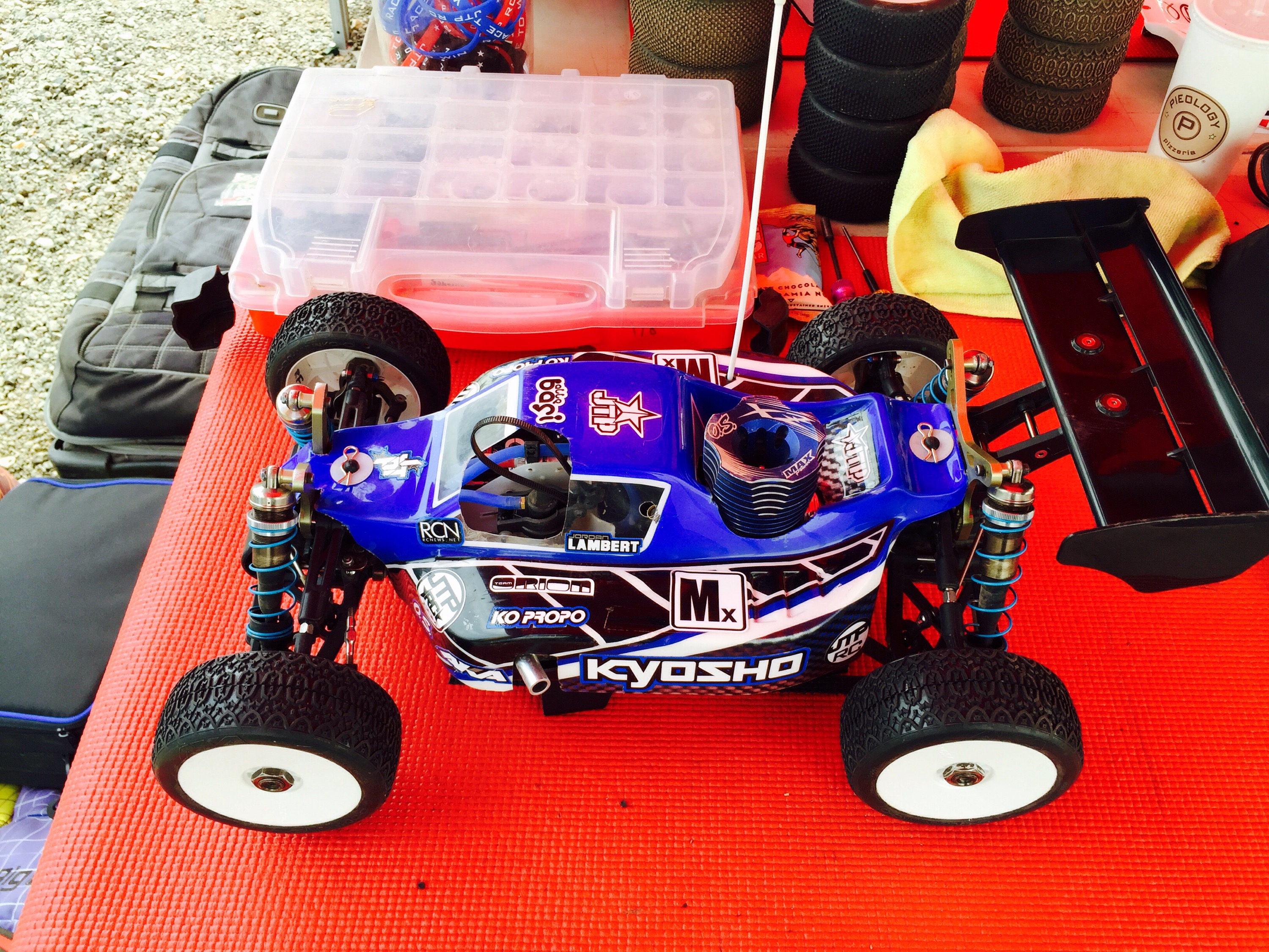 I had all three cars all ready to rock for the one and only practice. Truggy was up first and the track felt good. The layout was really fun, with some big jumps and a really cool whoop section. My new Mx engine and fuel was also running great in the first practice. Next up was E Buggy, going from nitro to electric is always tough, and with all the jumps, getting the timing down was key. By the end of the 6 minutes I had it down pretty good.