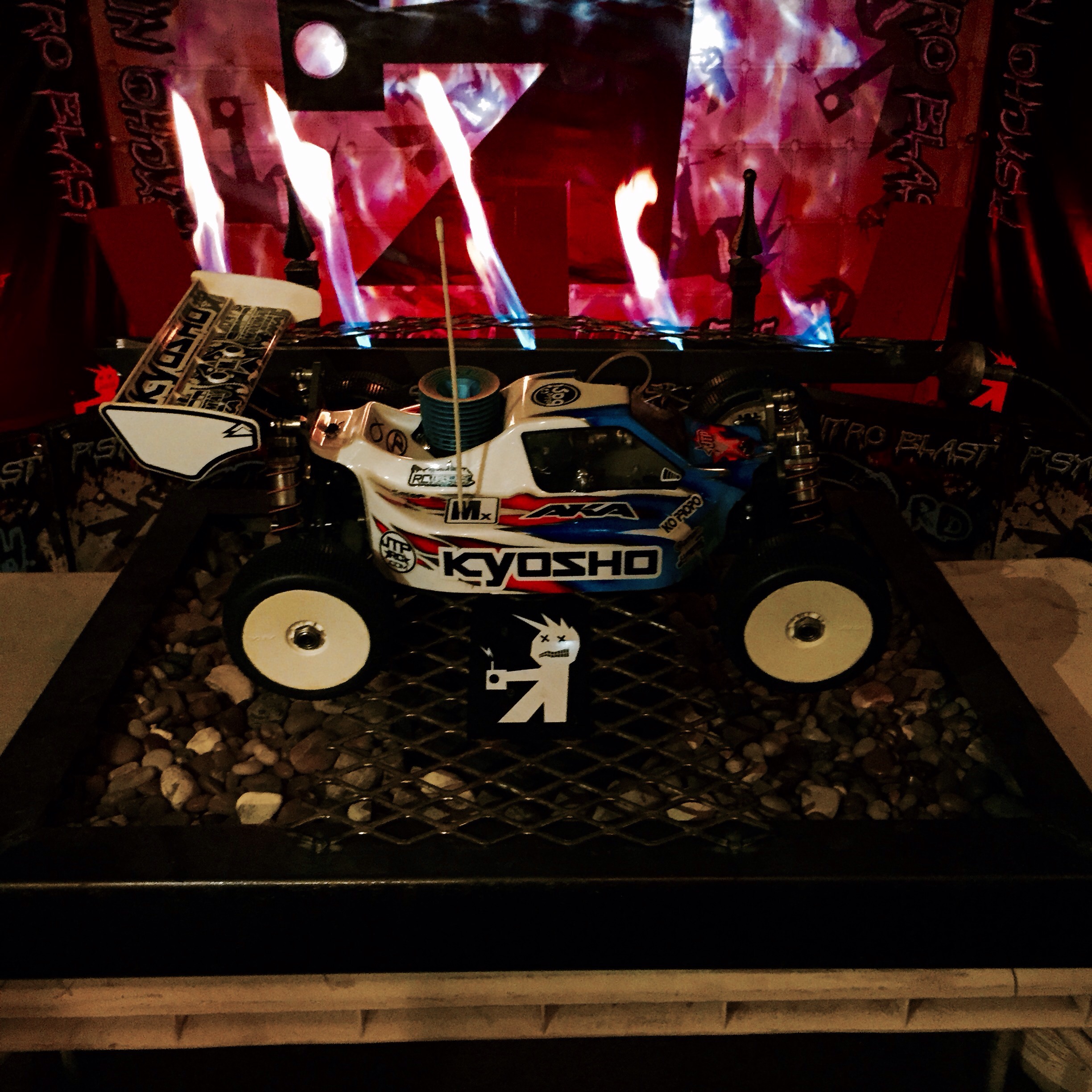 The main man behind the Psycho Nitro Blast, Dave, has all sorts of unique things around the track and pit areas. His specialty is special effects, and it was cool to see all the different things. Here is my MP9 on the flaming PNB car stand before qualifying gets underway.