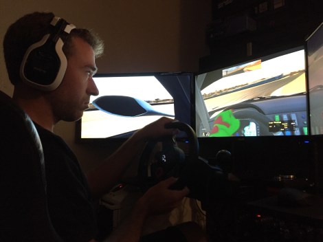 After the two nights are barely sleeping, long day of racing, and then the CRAZYNESS of doing the JTU, Sunday night I was exhausted!!! Not tired enough to stay off the I Racing simulator though….I was trying to give Scott a run for his money, but it was tough.