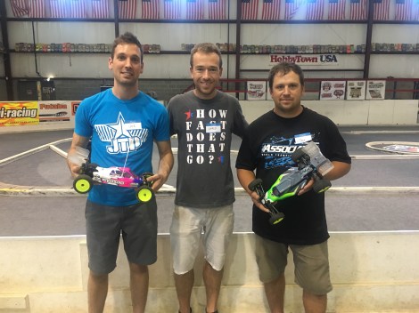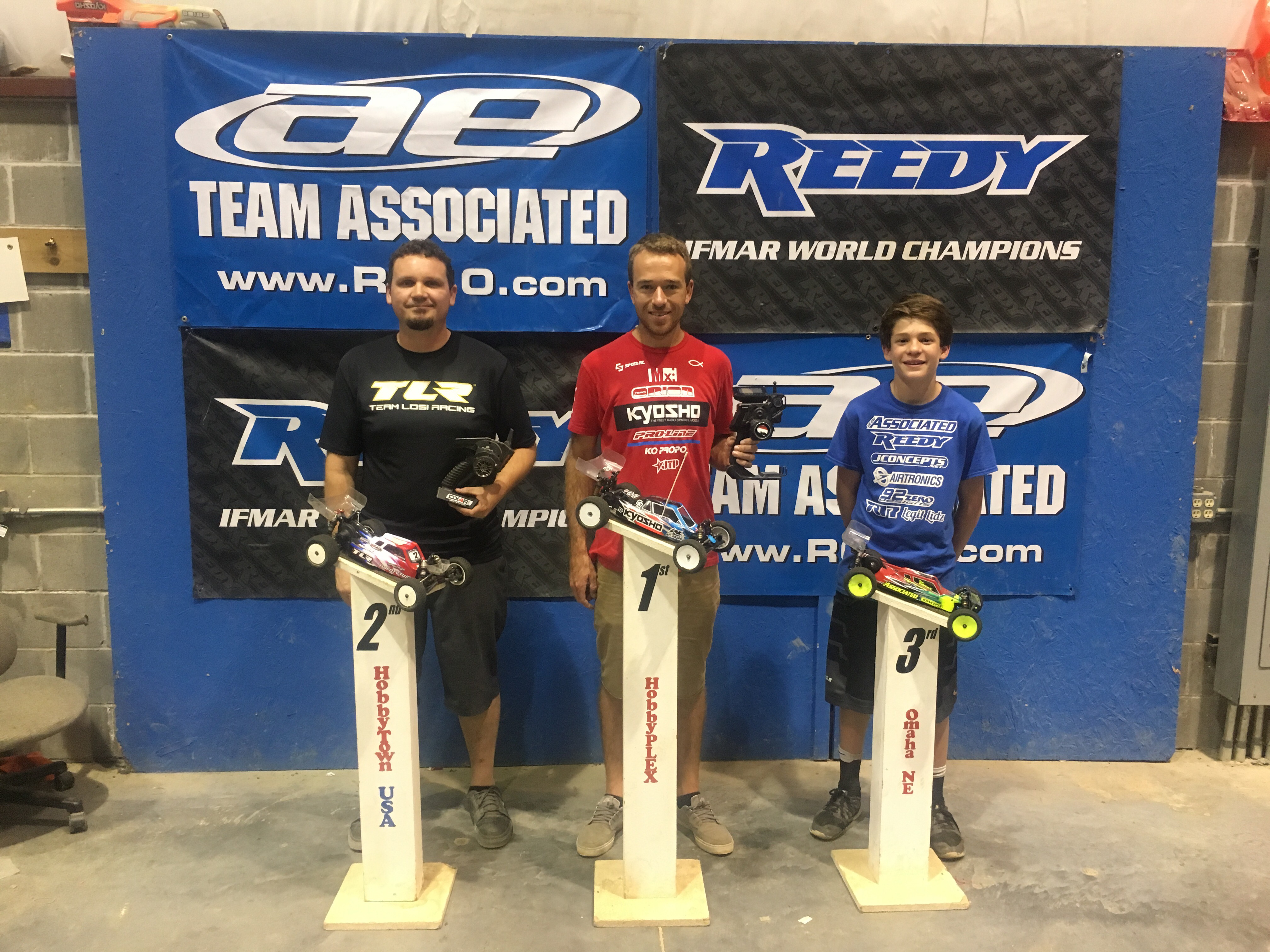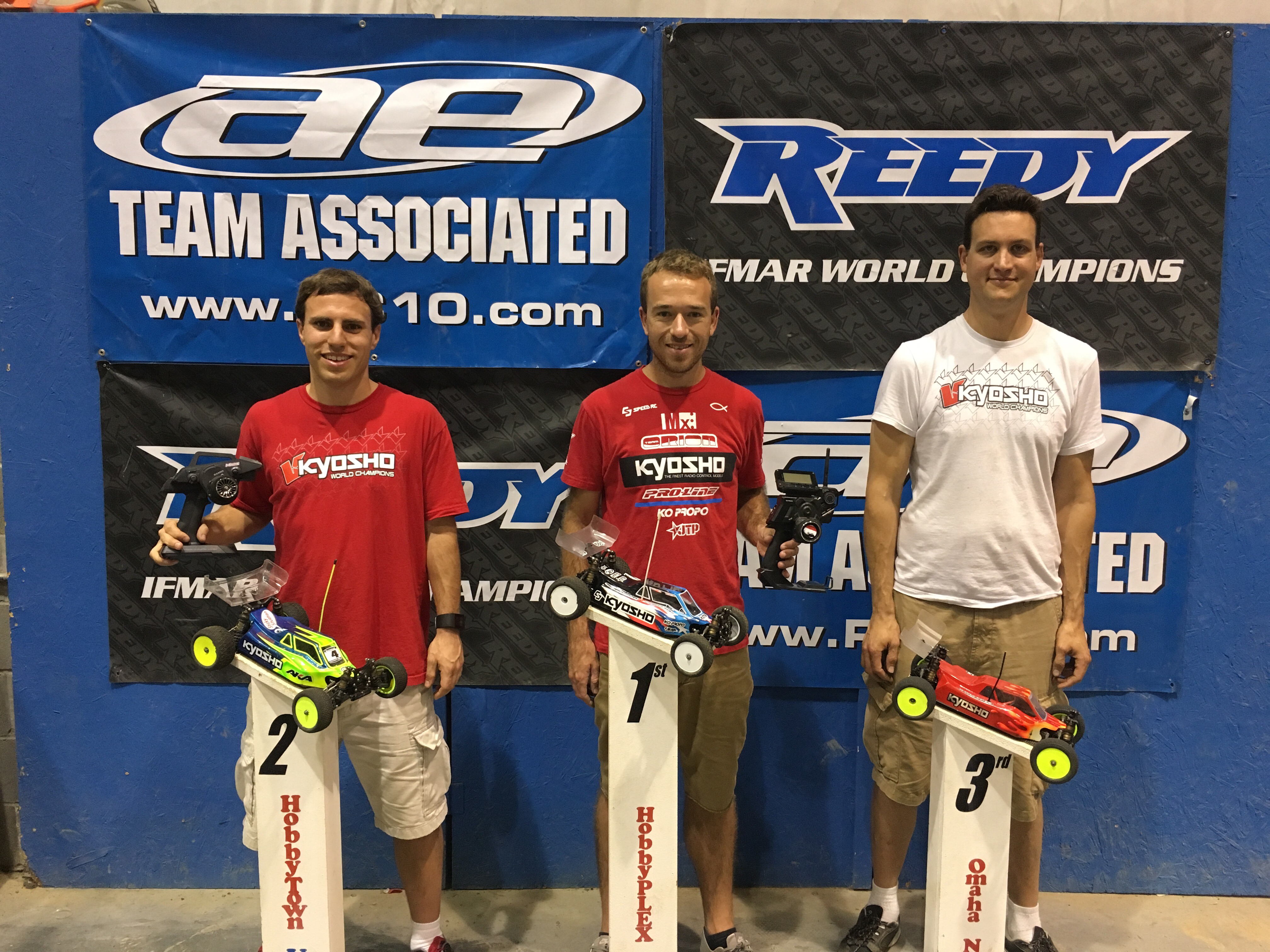 4WD Main: With just a single 8 minute A-Main, I knew a clean start would help. My car was driving perfect and I launched off the start and right away was building a gap. I lead all the laps and took the win with a pretty good gap. The Kyosho ZX6 was so good on this track, Kyosho finished 1, 2, 3!