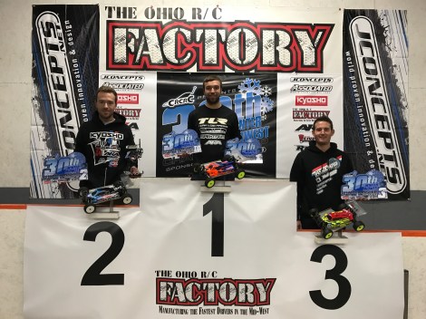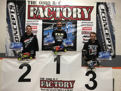 Friday was here and it was race time in 2017, bring it on! Mod 2wd was up first and I was feeling confident. My Kyosho RB6.6 felt perfect and I was just driving my own race. I had a really clean run and took a pretty easy TQ, starting out the day awesome! Mod Truck was next and the run was very similar to 2wd, except at the end. My Kyosho RT6 was driving great and I had a good lead, but had some misfortune at the end, loosing some time and battling for the TQ on the final lap. I made a last lap mistake on my own and lost the TQ. Mod SCT I was still getting used to racing it after not racing that class at all in 2016. I had a good run to get 2nd, but I was still a little off the pace and my Kyosho SC6 was feeling hard to drive fast. The last class would be Mod 4wd. I had the top seed and felt very fast, so I was expecting a TQ. Started out super fast and lead the first lap, but then on the second lap, a slower car crashed right in front of me, and I got tangled. After the crash I had to double the big back triple and lost more time, but I never gave up and charged to finish 3rd.