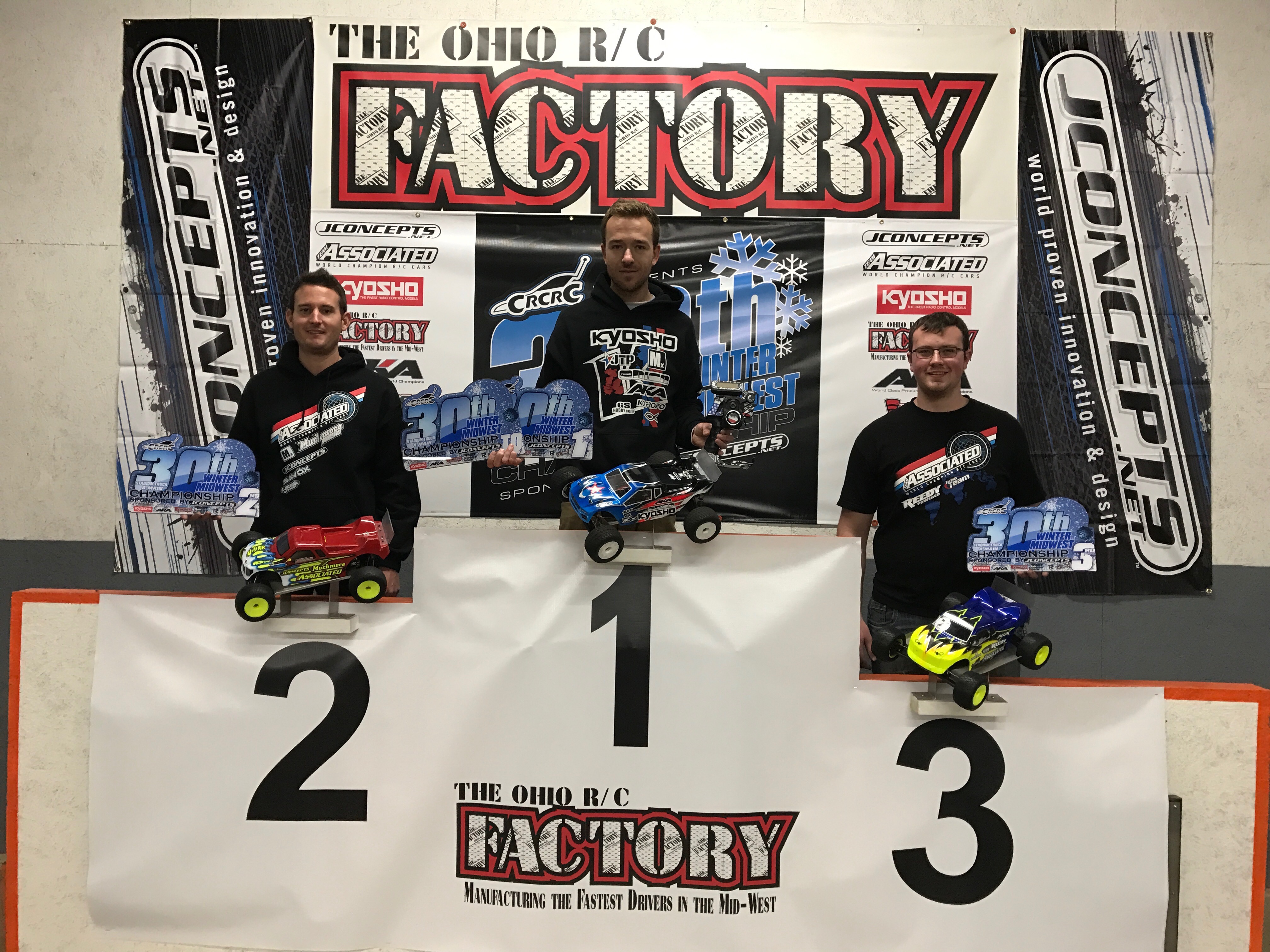 Friday was here and it was race time in 2017, bring it on! Mod 2wd was up first and I was feeling confident. My Kyosho RB6.6 felt perfect and I was just driving my own race. I had a really clean run and took a pretty easy TQ, starting out the day awesome! Mod Truck was next and the run was very similar to 2wd, except at the end. My Kyosho RT6 was driving great and I had a good lead, but had some misfortune at the end, loosing some time and battling for the TQ on the final lap. I made a last lap mistake on my own and lost the TQ. Mod SCT I was still getting used to racing it after not racing that class at all in 2016. I had a good run to get 2nd, but I was still a little off the pace and my Kyosho SC6 was feeling hard to drive fast. The last class would be Mod 4wd. I had the top seed and felt very fast, so I was expecting a TQ. Started out super fast and lead the first lap, but then on the second lap, a slower car crashed right in front of me, and I got tangled. After the crash I had to double the big back triple and lost more time, but I never gave up and charged to finish 3rd.