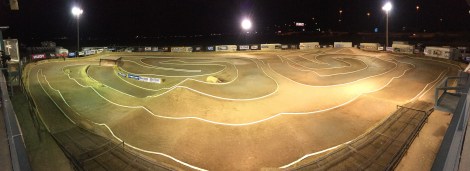 Wednesday was here and I was the birthday boy …. turning 30! The track would start out pretty rough, but would break in pretty nice by the time my first practice was up in heat 16. Ebuggy was up first, followed by Nitro Truggy, and then Nitro Buggy being the last class. I would start out practice with AKA Soft Impacts on all three cars just to get the feel of the track. The track was pretty challenging with the not so smooth conditions and two very tough jump sections. One being the step up in the middle, with no time to test jump anything before practice with all the weather they had, the jump just didn’t have enough lip to get you over the top and have you land on the downside. You would have to hit the lip fast and just clear the top, but launch all the way over the landing and deep into the turn. The next difficult section is the front triple, triple, triple. This section is the lowest spot on the track and held the most water, so now it was the roughest. The turn was super choppy and sticky, and the jumps were sticky and rough as well, it would cause havoc all day and all weekend. I felt pretty good on the track and all three cars were working pretty good. I felt like I had the track down pretty good and had a good grasp on my cars, the track was also coming around and getting better with each heat running. I got my cars ready for seeding and just waited. Ebuggy was the first class for me, and it didn’t go as planned. Right from the start something seemed wrong, the car had no power and no brakes, I wasn’t sure what was wrong. I got back to the pit lane and Joe Pillars pulled the body to check it out. We only get 6 minutes and with laps in the 43 second range, you didn’t get many chances at three consecutive laps. Everything looked fine, so I checked my radio … my brake and throttle EPA’s were both low, around 40% and my sub trim was off from zero. I started to adjust everything and then it clicked … I was on the wrong car model!!! I thought I was gonna get smarter when I turned 30 😦 I missed two laps and then got back out there, but I was out of rhythm and frustrated. I couldn’t put three laps together and crashed many times, seeding 13th. I couldn’t believe that I made such a silly mistake, but I put it behind me and got ready for Truggy. Putting on AKA Soft Gridiron2’s on my Kyosho STRR, my truggy was feeling good. I had a pretty good practice session, but was just a little off for the fast lap times, I seeded 7th. The water system also broke early in practice, so most of the day the track was ran dry and that is not normal for The Dirt. With the rough starting point for the track and the dry conditions, the track was already starting to get hard packed and even blue grooved in some spots. After the sun went down they got the watering system working some and decided to add a little water here and there. The track also getting better and the loose top was all off and the racing line was getting pretty clean. For Nitro Buggy I decided to run AKA Super Soft DoubleDown’s. My seeding would start at 12:40am … so it was a super long day. My Kyosho MP9 TKI4 was working great and I had a good run, seeding 3rd.