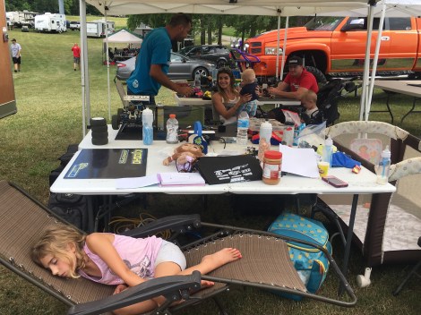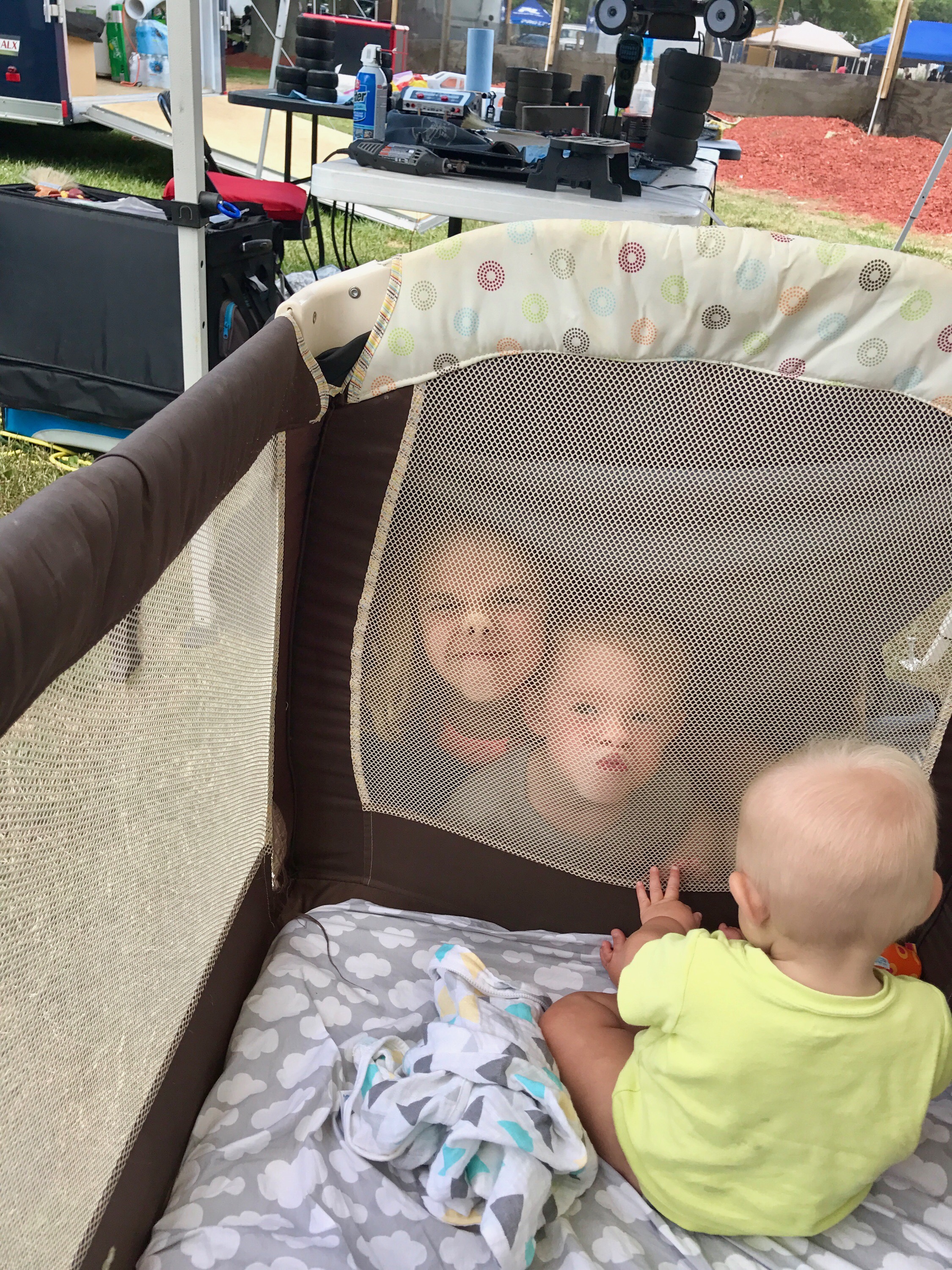 A week after AMS, I was off to Indiana for the 2017 ROAR 1/8 Fuel Nationals. Original plan was to fly, like I do to most races, but a few weeks prior, my plan changed, I was going to drive. The drive was 10 hours, and I needed to bring home a bunch of MX Racing fuel that got shipped to the track. Then last second, actually at 6PM Monday night, Megan and I decided that we would all go. Me, Megan, Rosalynn, Cole, and Nash, would squeeze into our extended cab F-150 and make the 10 hour drive. I was excited, nervous, and TERRIFIED! After AMS I decided I wouldn’t build brand new cars, I would just rebuild my cars that I raced at AMS. New Chassis, new arms, new sus mounts, new ring and pinions, new outdrives, new drive shafts, new caster blocks, new hubs, new bearings, new shock towers, new shocks on my buggy, new pistons / springs on my truggy. Late Monday night I was finally packed, and Megan had a really late night getting all her stuff and the kids stuff packed. 9:30AM Tuesday morning we were off and on the road.