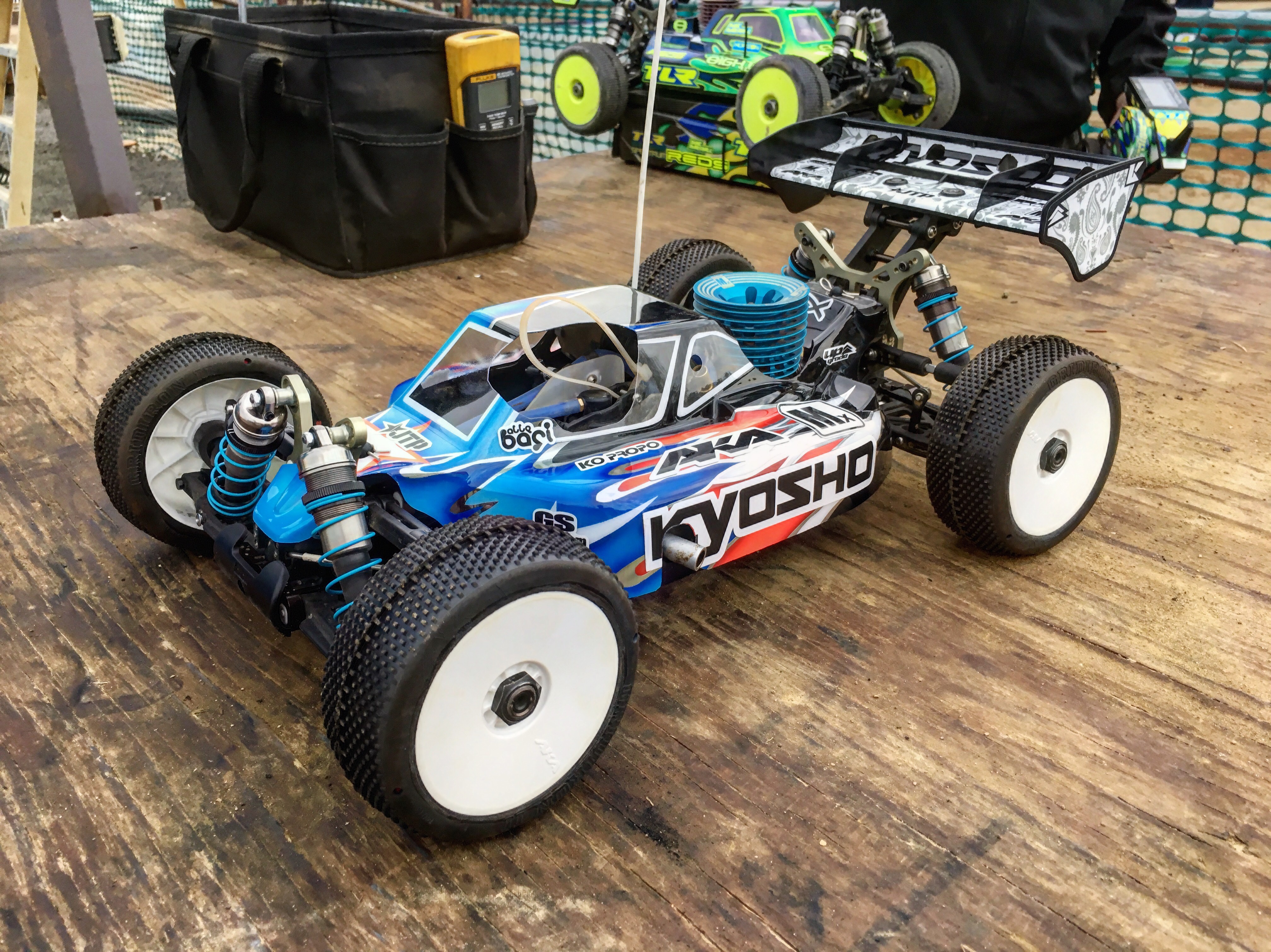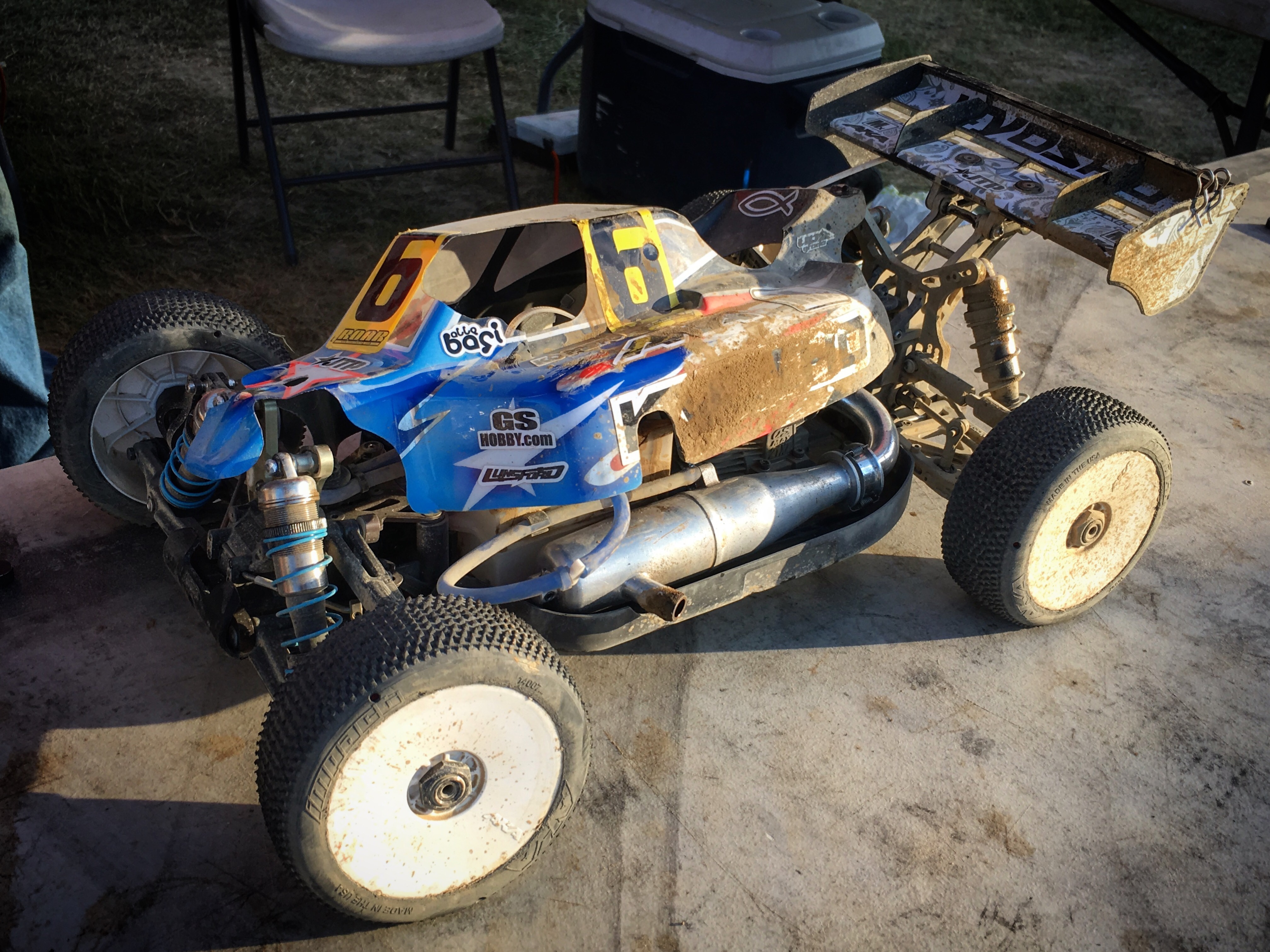 Practice : Truggy I made quite a few changes … Clutch setup, rear camber link, front sway bar, rear diff oil, and wheelbase adjustment. I practiced with AKA SLW Impacts and they felt really good. I was pretty fast, but Maifield and Tessman seemed quite a bit faster than me. Buggy I only made one change, and that was a rear shock location and spring change. I ran AKA SLW Impact and my car felt ok, but the rear end setup wasn’t great, it was driving too much on the rear end and didn’t feel supported enough.