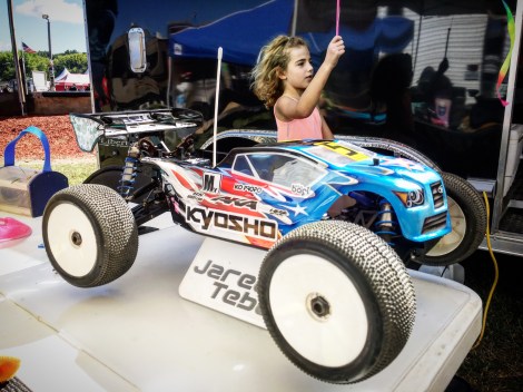 Q4 : With 3 different TQ’s, myself in Q1, Rivkin in Q2, and Tessman in Q3, it all came down to the final qualifier. I was felling very confident and ready to have a clean run and get the overall TQ. The track was feeling edgy, so I went with AKA SLW Impact to try to have a smooth feeling around the crazy difficult track. I crashed on the first lap of the dragons back, so I had my work cut out for me. I knew a clean run would be almost impossible, so I got into a flow and charged the best I could. I was catching up on time and it was looking like I might be able to fight for TQ before the race ended. Disaster struck again on the dragons back and I crashed again, lost my flow and crashed 2 more times on that same lap. I finished 10th and was pretty bummed. Truggy wouldn’t go much better. I ran AKA SLW Impacts, which was the correct tire, but my truck was really hard to drive and I struggled all heat to finish 7th. Not pleased with my final round qualifying being the worst runs of my weekend so far. Thankfully my wife and kids were there to cheer me up and clear my mind from the race.