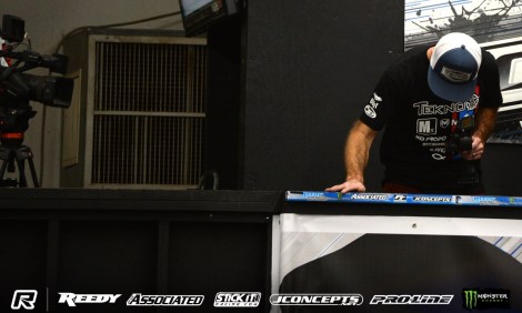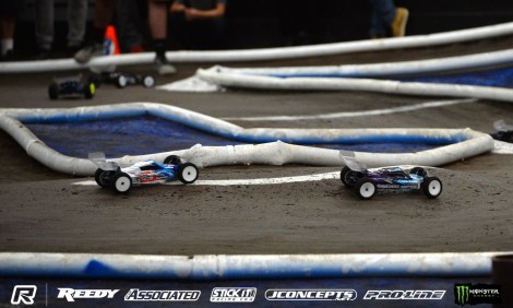 We would get three practice runs with each car, 2wd Mod Buggy and 4wd Mod Buggy, with each run being 5 minutes in length. This race is also a spec tire race, with daily tire impound and a spec tire sauce that must be used. There is no sanding or breaking in tires, so the start of practice is always pretty tough. I mainly just focused on learning the track, figuring out my position that I want to stand at, and a general feel of my cars. For 4wd I had a great base setup to start on with my TEKNO EB410 and it felt great, as expected. I made a few small changes, mainly just softening up my car, softer front shock oil, lighter springs front and rear, and lighter sway bars. The traction in the track seemed less than years previous. For 2wd and my Tekno/AE B6.1 I would start with a base setup from Dustin Evans. Dustin is a great driver, awesome competitor, and great friend … so he helped me get comfortable. We both made some changes during practice, mainly just added grip into the car, going from +2 on all the heights (front axle, rear axle, diff) to +1 in the front and 0 in the rear. At the end of practice, both my cars were amazing and I was very very confident for racing.
