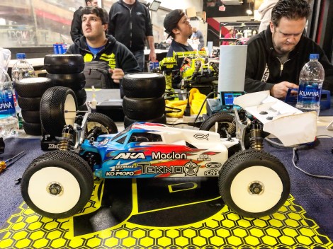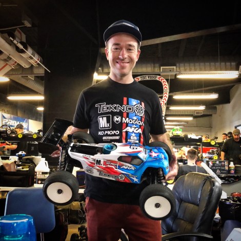 Pro Nitro Truck : Unfortunately I would actually miss the start of the 45 minute main. Before the main, I wanted to change my shock oil, and I had forgotten to tighten one of the rear shock caps. When setting my ride height, one of my rear spring collars seemed to be turning easier than normal, but I wasn’t paying enough attention. I was actually loosening up my shock cap, not adjusting my spring collar. During the warm up, the oil came out of that shock and I felt my truck change. We ran back to fix it, but the race organizers and director had said that no time would be given to racers in the mains. I didn’t really know what to do, people were not in the pit area, I didn’t have time to refill the shock, and I didn’t have a spare. Jared Wiggins grabbed the first Tekno Truggy he could find, we swapped the shock, and I started the race 2.5 laps down. I was super mad inside, didn’t drive good for the first few minutes as I needed to calm down some. My truck was driving ok, but I could tell that the shock was not setup the same as mine. Turned out after the race that it had a spring that was two rates softer, had a bladder, and who knows what piston and oil. I got into my groove, started to click off laps and I had a goal of finishing 3rd. After halfway I had moved up to 3rd, but I was still down two laps to the leaders, Bornhorst and Drake. They were having a great battle for the lead, but then Drake made a costly mistake with just a few minutes left in the race. He ended up in pit lane after going on two wheels in the sweeper, then jumping out of pit lane, he caught a pipe nail and ripped the rear end off. I moved into 2nd and finished the main 1 lap down to Bornhorst. I had mixed emotions after, happy to still finish 2nd, but pretty mad that I made that mistake and cost myself the chance to battle for the win. My pace was great, my AKA tires felt good, we executed the 9 minute pit strategy easily … I just messed up and wasn’t able to fix it in time to make the start. Thanks to Dillon Caldwell and Jared Wiggins for the pit stops.